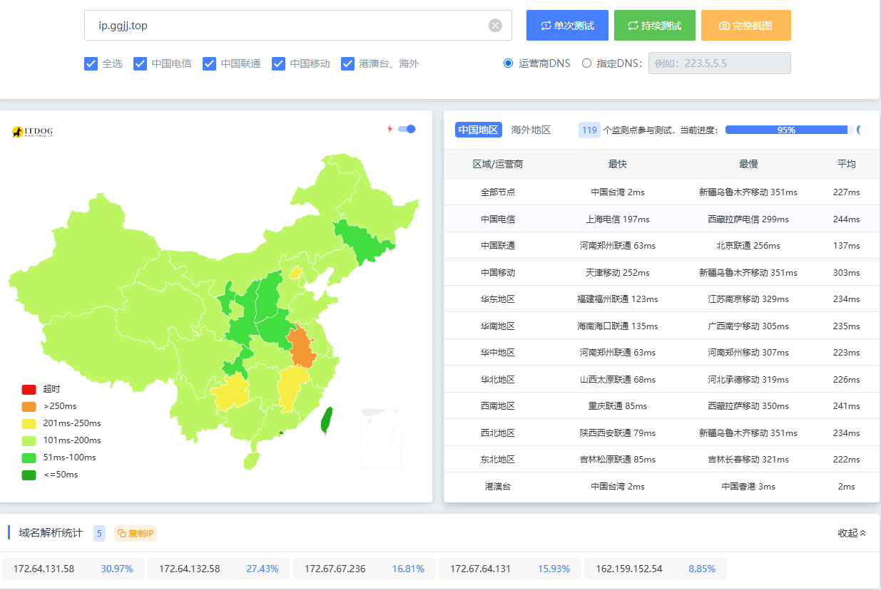 使用工具优选出适合你网络的,本期以已经优选好的域名ip.ggjj.top为例已经优选出6个IP